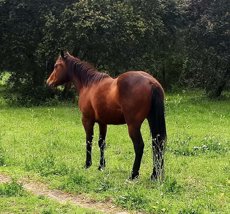 Árabe al 50 %, este caballo fue un regalo muy especial, criado en libertad entre osos, lobos y urogallos en las montañas del norte de León. Inteligente, rústico, muy seguro de si mismo y amable con la gente.